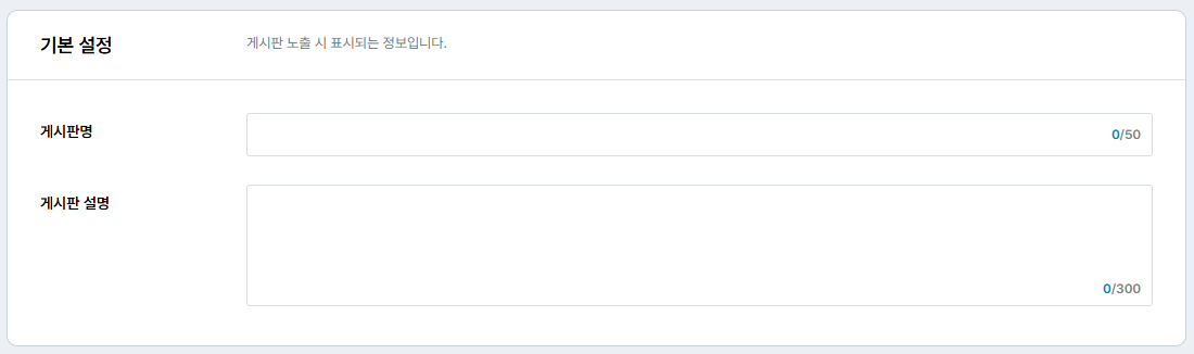 게시판명 : 설정한 게시판명으로 사이트와 게시글 조회화면에 표시됩니다.