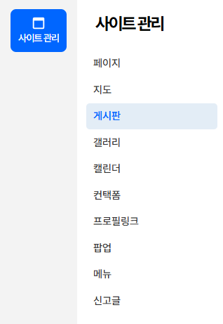 관리자 페이지 > 사이트 관리 > 게시판 메뉴에서 게시판을 추가로 생성하거나 게시판의 설정을 수정할 수 있습니다.