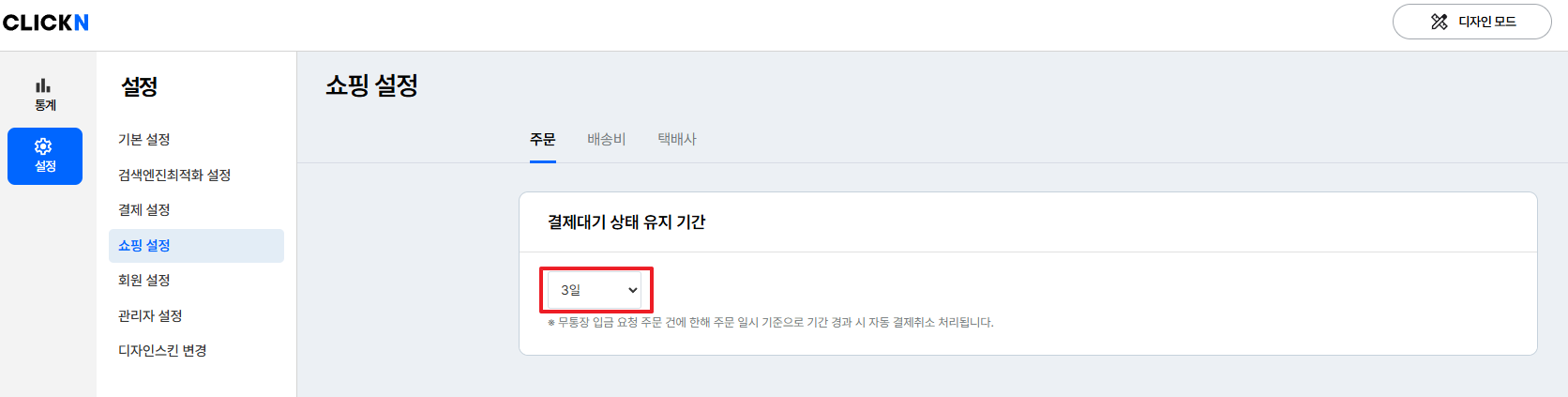 결제 대기 상태로 설정한 기간이 경과하면 자동 주문 취소 처리가 진행됩니다.