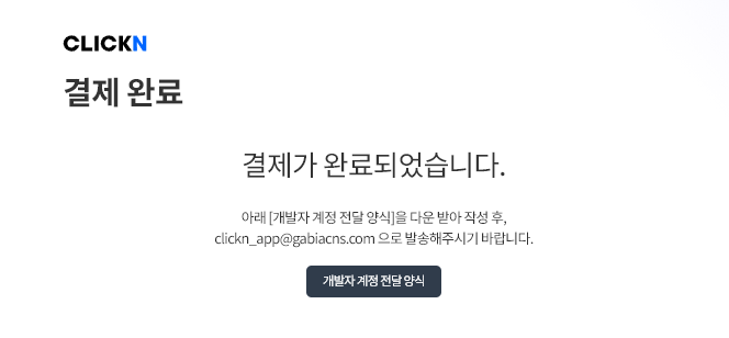 앱 제작 신청이 완료되었다면 개발자 계정 전달 양식을 다운받아 작성한 후 클릭엔으로 전달해 주세요.