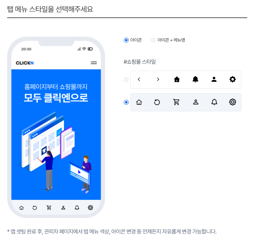 앱에서 사용할 아이콘 및 탭 메뉴 스타일을 선택해 주세요.