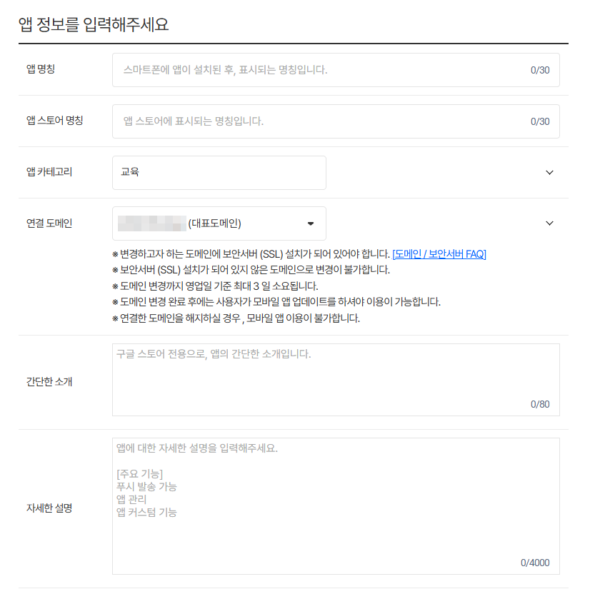 각 스토어에 노출될 앱 정보를 입력해 주세요.