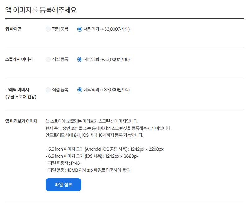 앱 이미지 제작 의뢰 비용 : 1건 당 33,000원