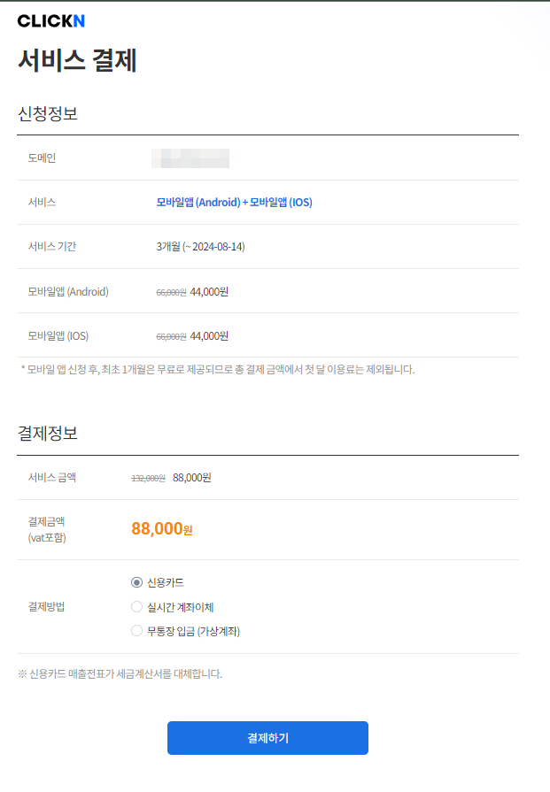 서비스 신청이 완료되었다면 결제 금액을 확인하고 결제를 진행해 주세요.