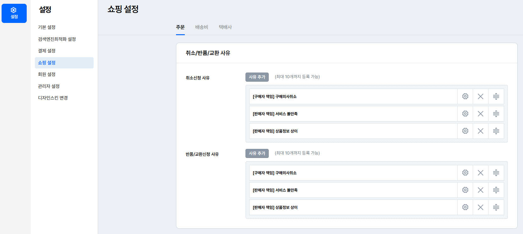 취소/ 반품 / 교환 사유는 아래 메뉴에서 수정할 수 있습니다.