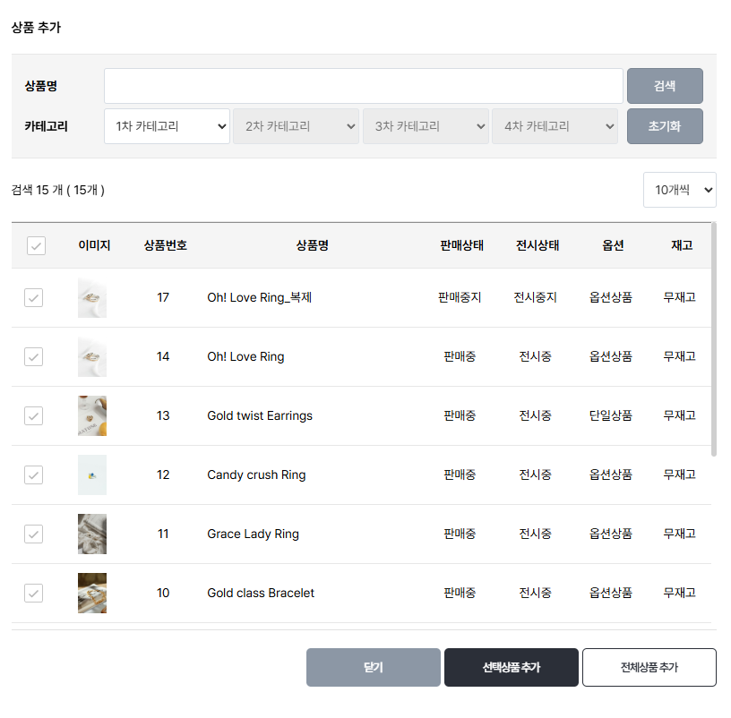 서로 다른 카테고리의 상품들을 하나의 그룹으로 묶어 노출할 수 있는 기능입니다.