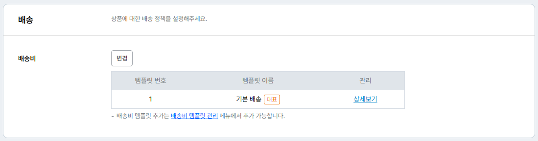 배송이 필요없는 상품일 경우 배송없음 템플릿을 생성하고 연결할 수 있어요.