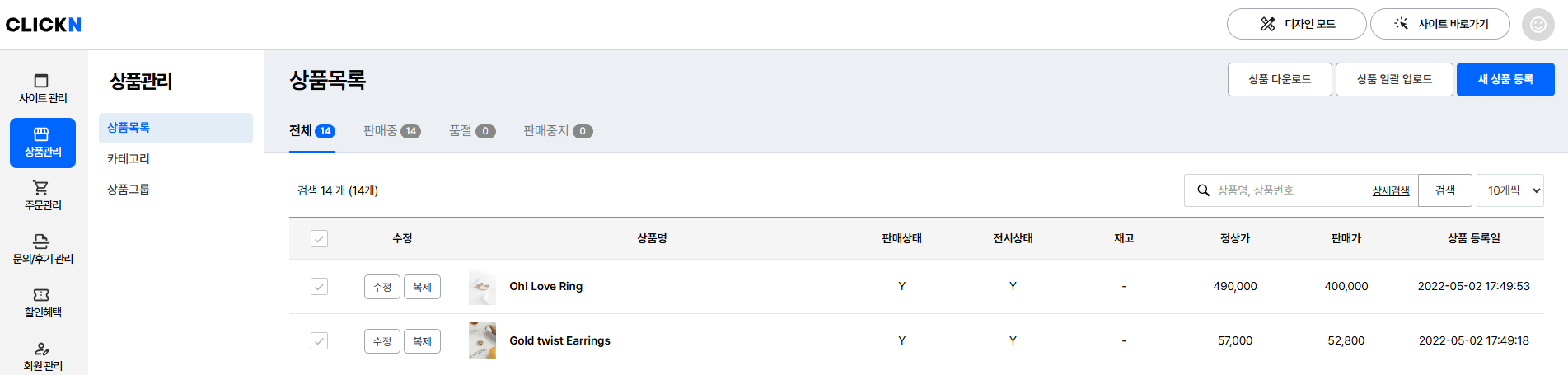 새 상품을 등록하거나, 상품 정보를 수정할 때 상품 목록 메뉴로 접속해 수정할 수 있어요.