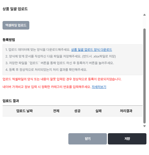 다수의 상품을 일괄 업로드할 경우 업로드 시간이 소요될 수 있습니다.