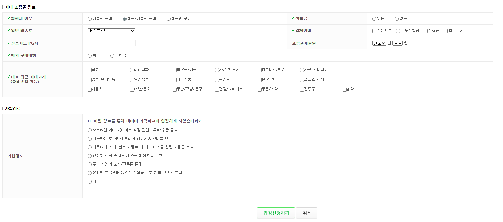 네이버 가격비교 (구 네이버쇼핑)를 연동하기 위해서는 네이버에 입점 신청을 진행하고,