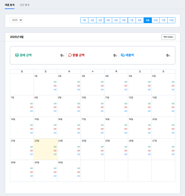 운영중인 쇼핑몰에서 발생한 결제 금액을 확인할 수 있습니다.