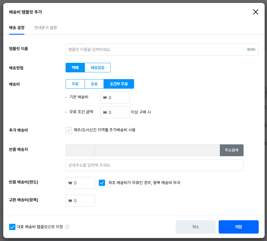 템플릿 이름 : 배송비 템플릿 관리를 위한 이름