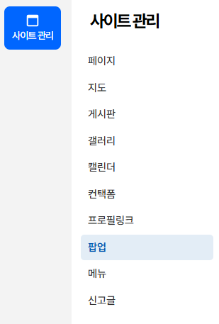 관리자 페이지 > 사이트 관리 > 팝업 메뉴를 통해 팝업을 생성하고,