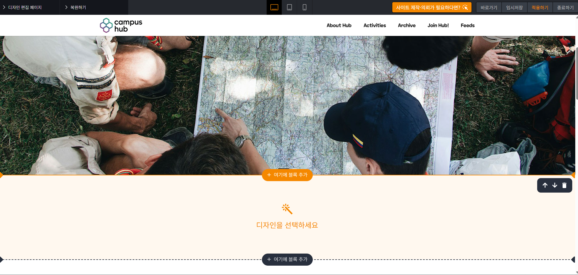 프로필링크 설정을 완료해 주셨다면 디자인 모드에서 프로필링크 블록을 추가해주세요.