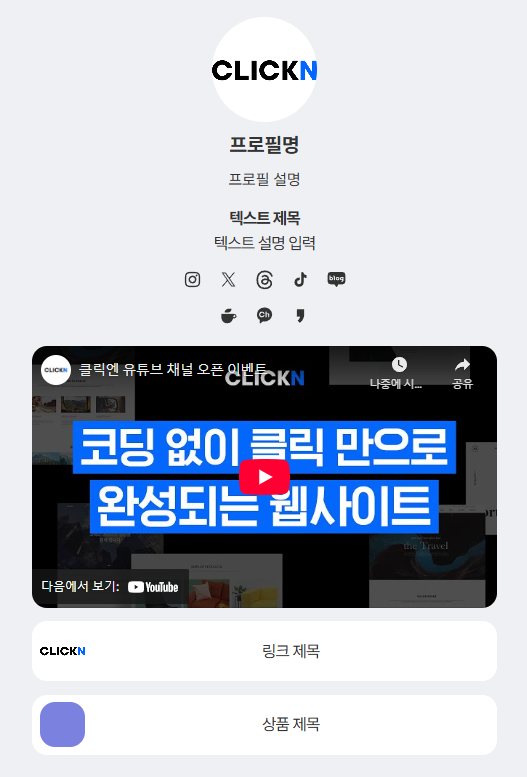 유튜브 : 유튜브 영상을 URL로 불러와 프로필 링크에서 노출할 수 있는 항목